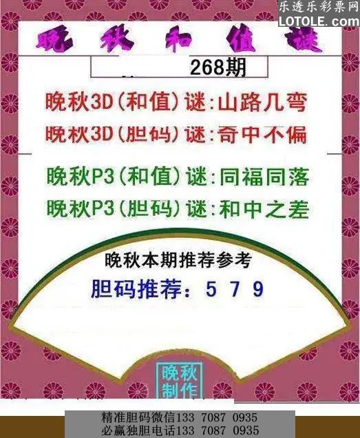 268晚秋和值谜乐透乐 第一时间发布