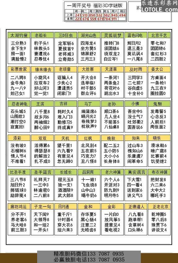 010期北京试机号谜语:半吊子胆23开667