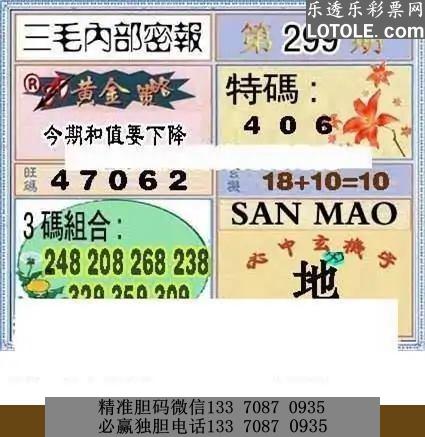299乐透乐 三毛图,谢谢支持乐透乐 第一时间发布