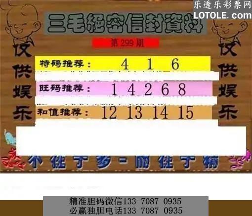 标题: 299乐透乐 三毛图,谢谢支持乐透乐 第一时间发布