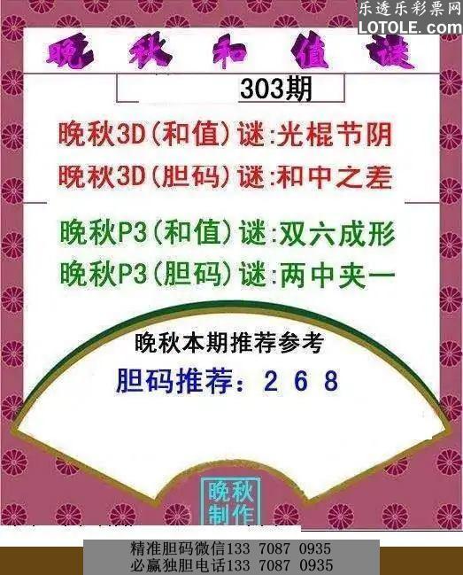 303晚秋和值谜乐透乐 第一时间发布