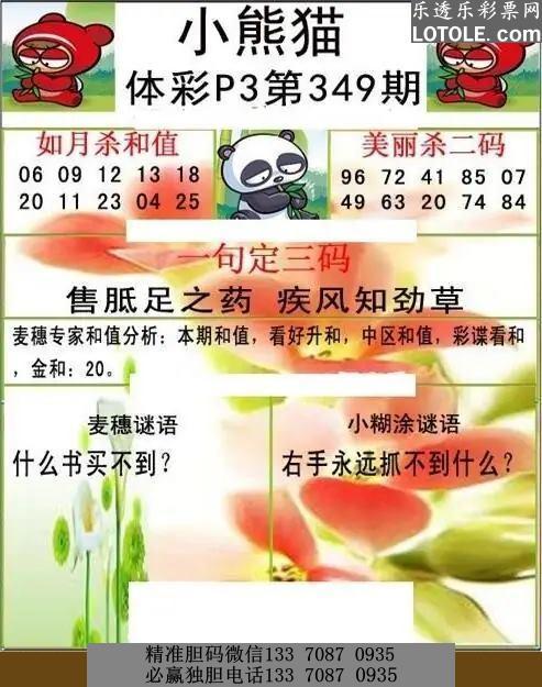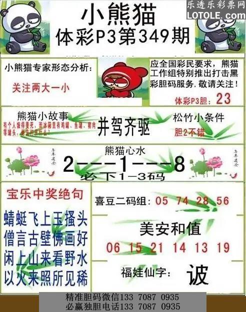 标题: 349小熊猫乐透乐 第一时间发布