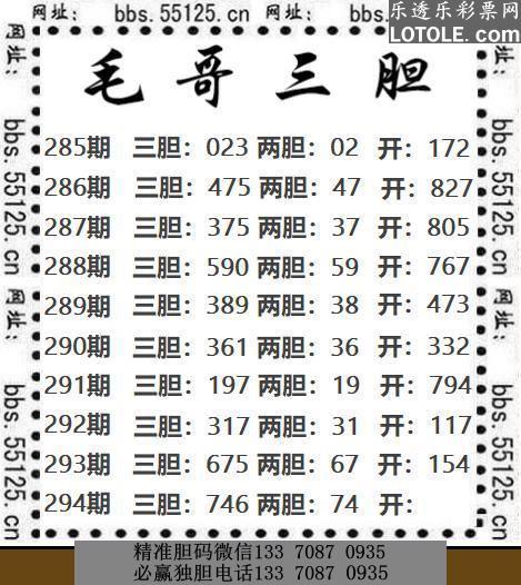 标题: 294毛哥三胆乐透乐 第一时间发布