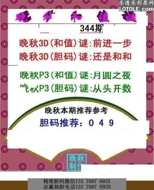 344晚秋和值谜乐透乐 第一时间发布