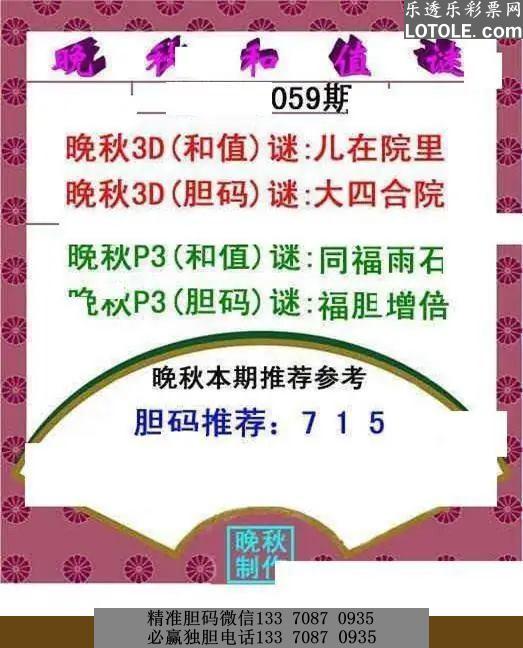 59晚秋和值谜乐透乐 第一时间发布