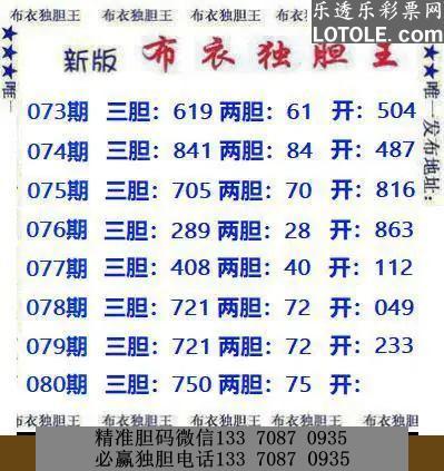 80新版布衣独胆王乐透乐 第一时间发布