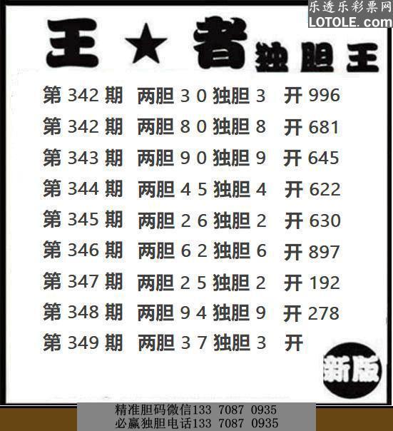 标题: 349王者独胆乐透乐 第一时间发布
