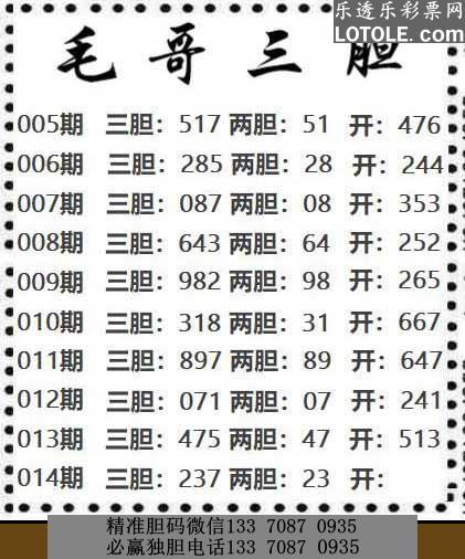 标题: 14毛哥三胆乐透乐 第一时间发布 上一主题 | 下一主题