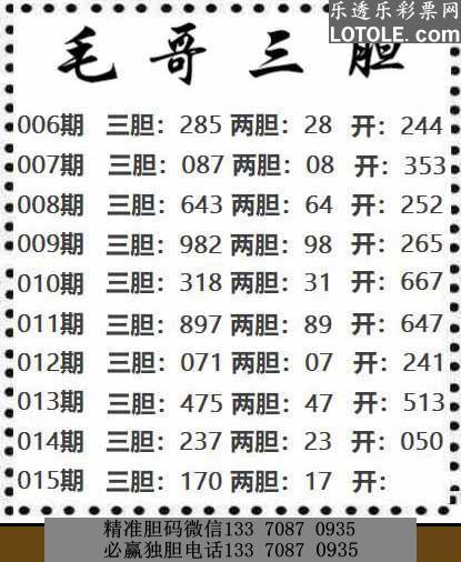 标题: 15毛哥三胆乐透乐 第一时间发布