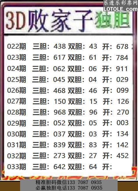 33败家子独胆乐透乐 第一时间发布
