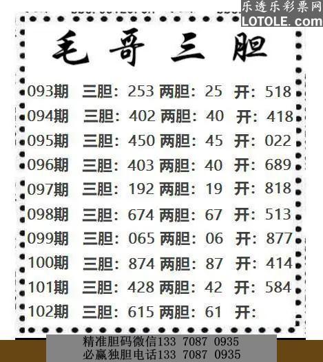 标题: 02毛哥三胆乐透乐 第一时间发布 上一主题 | 下一主题