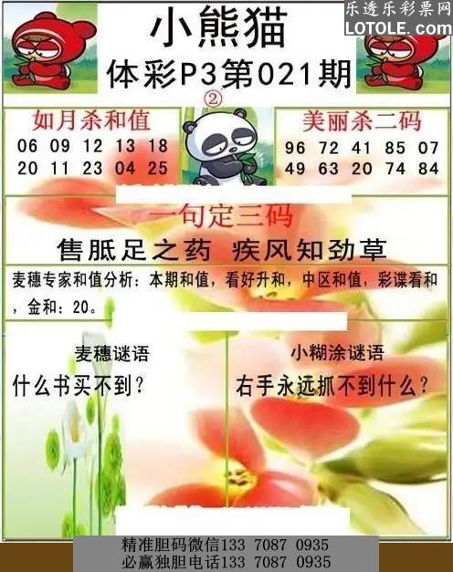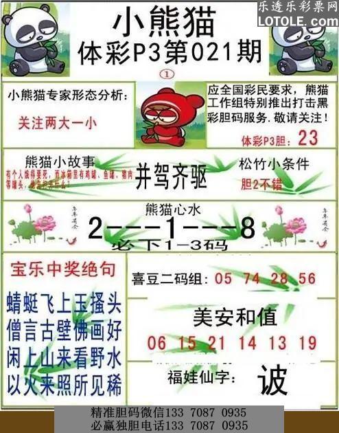 标题: 021小熊猫乐透乐 第一时间发布