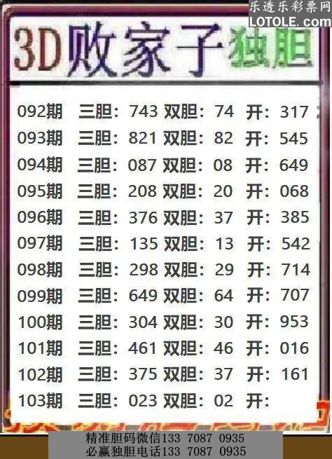 103败家子独胆乐透乐 第一时间发布