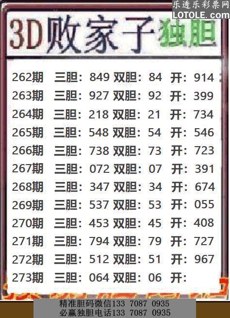 标题: 273败家子独胆乐透乐 第一时间发布
