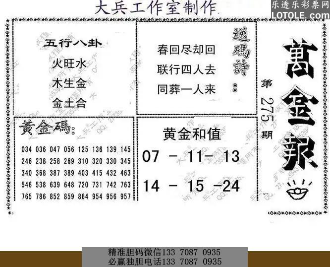275大兵全版乐透乐 第一时间发布