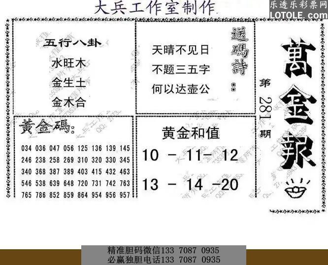 281大兵全版乐透乐 第一时间发布