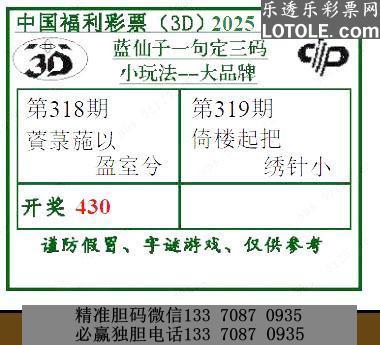 319蓝仙子一句定三码乐透乐 第一时间发布