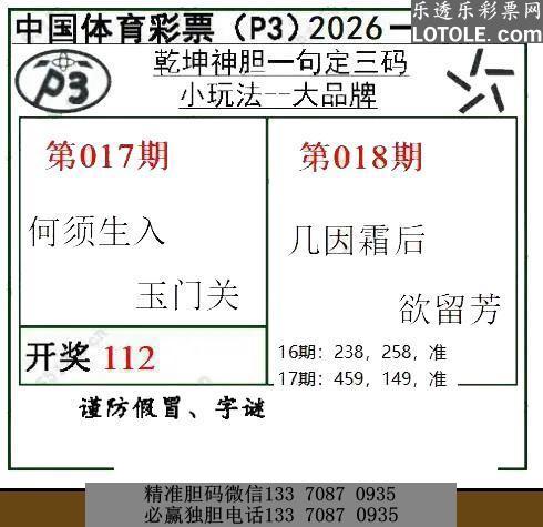 标题: 018乾坤一句定三码乐透乐 第一时间发布