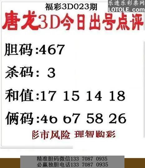 标题: 23唐龙点评乐透乐 第一时间发布 上一主题 | 下一主题