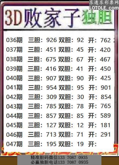 47败家子独胆乐透乐 第一时间发布