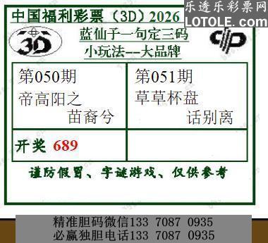 标题: 51蓝仙子一句定三码乐透乐 第一时间发布