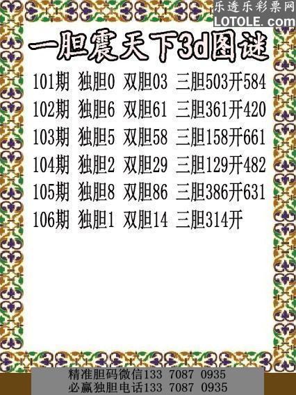 标题: 06天下独胆乐透乐 第一时间发布